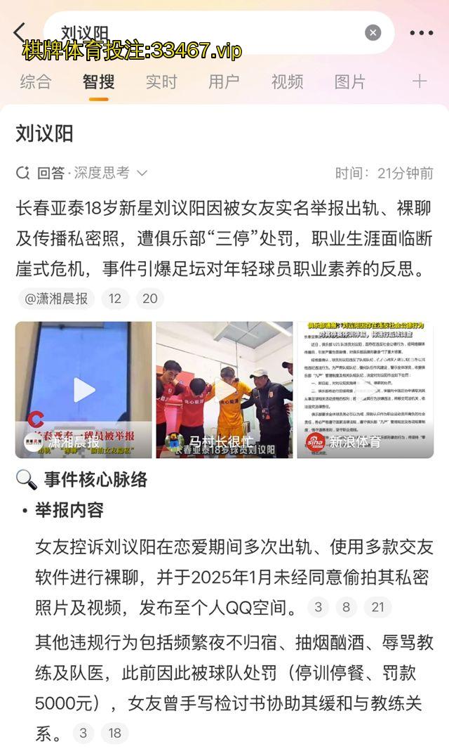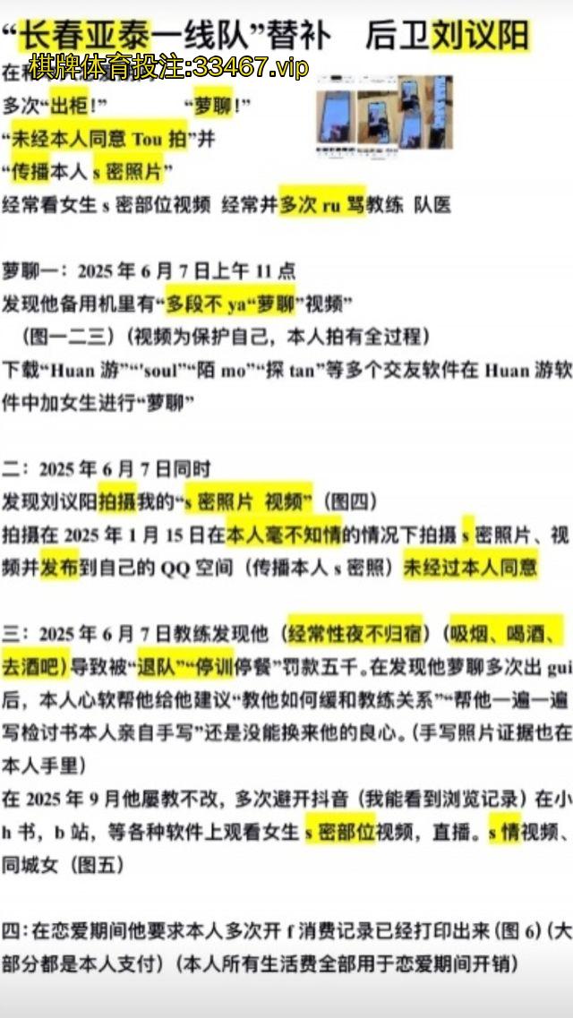 足球圈又炸锅!长春亚泰U21后卫、18岁小将刘议阳,直接被自称女友的网友“希望这个世界善良一点”在微博、多平台锤爆黑料:恋爱期间多次出轨、裸聊、偷拍私密照还发网上炫耀、夜不归宿泡吧喝酒抽烟、辱骂教练队医,导致多次被退队停训罚款!