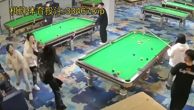 黑衣妹不敌倒地后,又冲进来一名纹身精神小妹想救场,结果还是被两把砍刀逼得节节败退,灰溜溜跑路!旁边打球的小妹妹全程淡定推杆,砍人声、惨叫声、血腥味全当背景音,台球还照打不误!